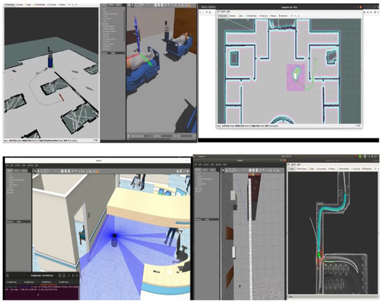 The implementation of the robot in a specialized environment is an additional advantage of the proposed solution. A simulation in an environment is given below for further clearance. An open-source 3D robotics simulator called Gazebo is utilized to simulate a healthcare setting in which the robot’s maneuverability and control capabilities in various environments or scenarios are tested. The results are shown in Figure 13.