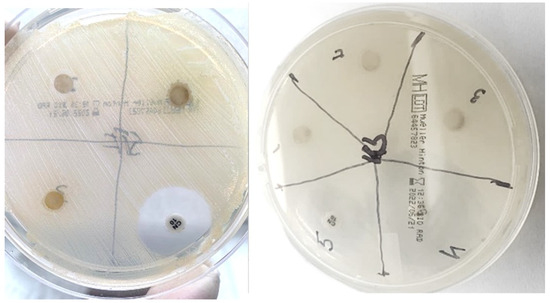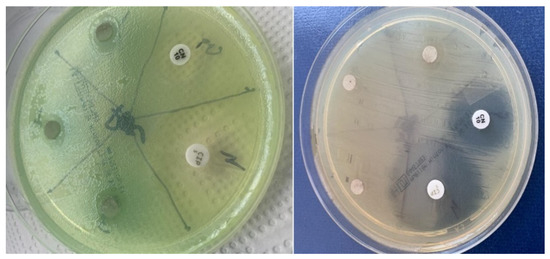 The expression of the results is conducted by relating the size of the zone of inhibition to the standards of critical diameters for different antibiotics, which allows the definition of strains as sensitive, intermediate, and resistant [22,23,24]. The bacteria that we had the right to test were grown on various culture media; as a positive control, antibiotics and antifungals were used, and as a negative control, distilled water was used (Table 1).
