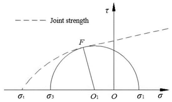 The ultimate equilibrium state of the joint strength on the σ-τ plane is shown in Figure 3, where σ1 is major principal stress and σ3 is minor principal stress.