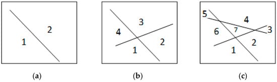 Figure 8b), and with three subspaces in a general position, we can divide the 2-D feature space into seven regions (