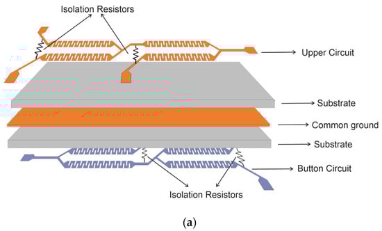There are different design approaches for WPDs, such as tapered transmission lines [1], three-section [2], dual-band structures [3], dual-lines [4], and triple lines [5]. In addition to these, open-/short-circuited stubs and defected ground structures are used to achieve improved isolation [6,7,8]. Single- or multi-band WPDs operating in a wide frequency band have also been studied. Among these, semi-lumped-element power dividers with dual-band characteristics in the UHF/SHF bands [9], flexible design schemes for single− and dual−band power-dividing operations [10], dual-band unequal WPDs [11], multi-T-section characterization of high-impedance transmission lines [12], multi-band reconfigurable differential power dividers [13], multiband WPDs based on multisection LC ladder circuits [14], and single/multi-band WPDs with transversal filtering sections [15] stand out. Such WPDs may find application areas especially in multifunctional communication systems. Moreover, the placement of power dividers in antenna arrays is one of the main focuses for researchers. Therefore, size reduction is another important parameter for WPDs, since it is required for feeding the elements of the antenna array within a relatively reduced area. To date, slow-wave structures have been especially used for size reduction. For this purpose, capacitively loaded stubs [16,17] and narrow-slit-loaded and meandered transmission lines [18,19] are largely employed for WPD designs. Periodically, loaded slow-wave structures are modified for different targets, including dual-band applications [20,21], SiGe BiCMOS processes [22], filtering power dividers having resonant LC branches [23], etc. In some structures, coupled lines are used to suppress undesirable harmonics so that the signal can be transmitted within the desired frequency region [24]. On the other hand, in order to adjust the directivity, antenna array elements may need different power ratios at different elements. Therefore, unequal power dividers may also find applications in antenna arrays to meet the asymmetric power division requirement [25,26,27]. There are two types of equal WPDs: N-way and cascaded models. N-way WPDs have an input port and N output ports with the impedance of , whereas cascaded model WPDs divide the input power by 2 at each cascaded path [28].