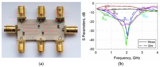 - Park, M.J.; Lee, B. A dual-band Wilkinson power divider. IEEE Microw. Wirel. Compon. Lett. 2008, 18, 85–87. [Google Scholar] [CrossRef]