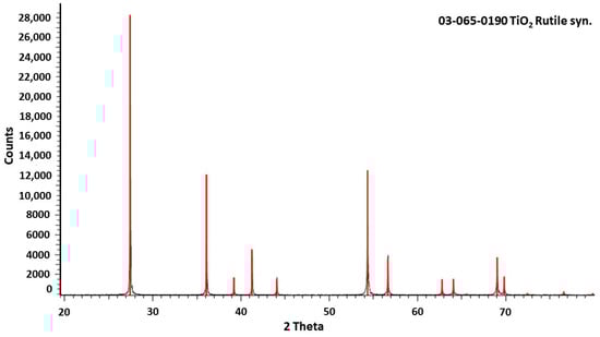 According to the XRD patterns of titania rutile and titania anatase (Figure 4), there were no reflections that have not been identified, indicating there were no impurities or unidentified phases in both substrates [38]. The metal-doped catalysts were also analyzed by XRD but provided spectra identical to their corresponding substrate. This might be attributed to the low metal concentration of the examined photocatalysts, which is below the detection limit of the instrument (~3%).
