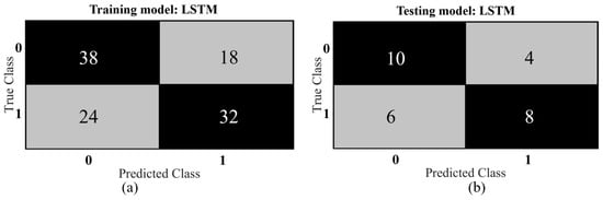 Figure 9 represents the training and testing stages’ performance of the adjusted LSTM network in the form of confusion matrices.