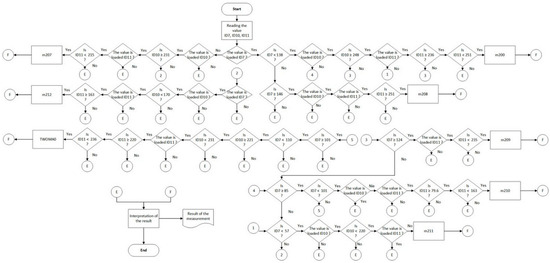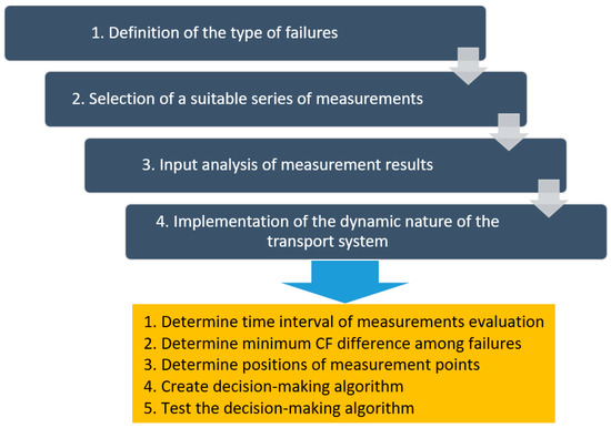 Verification of the decision-making algorithm for the identification of selected failures (step 1) starts at a failure-free state for each type of failure (the algorithm output is m200).