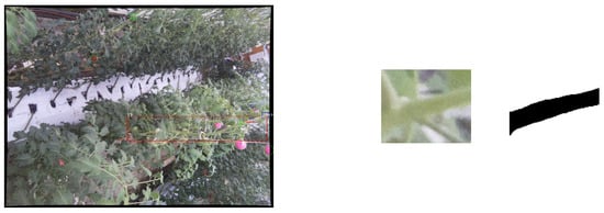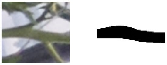 The extraction results of segmentation using DeepLabv3+ are shown in Figure 8. The black areas in the right image are the extracted stems.