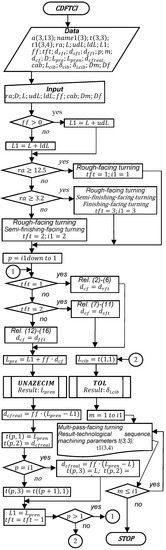 The mathematical models (2)–(16) and the database (Table 2) have been integrated into the new software tool named CDFTCI (calculation of depth of cut for facing turning of cast iron), presented as the flow chart in Figure 2 and user interface in Figure 3.