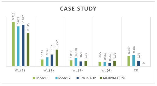 The optimal weights’ ordering and the CR of the criteria are presented in Figure 3.