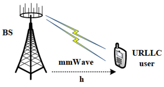 Consider a point-to-point mmWave MISO URLLC communication system, as shown in Figure 1 [13]. The base station is equipped with antennas and RF chains, while the user is equipped with one antenna. The data stream of a single user model is .