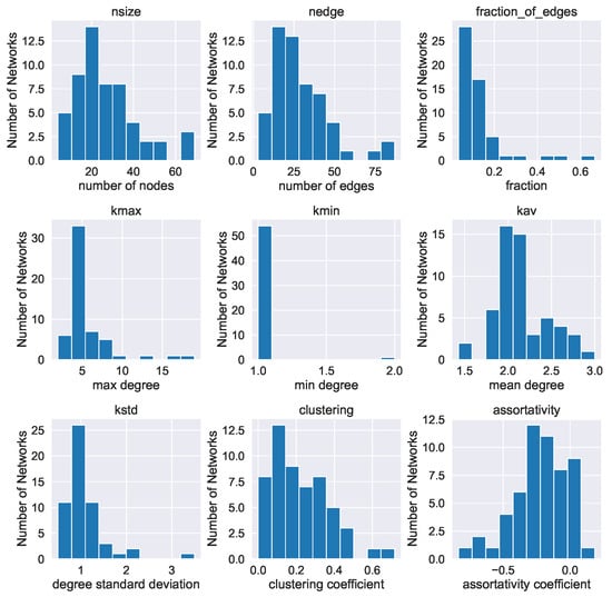 Networks have become an invaluable tool of applied mathematics due to their versatility in describing so many diverse physical systems using a common framework ([54,55,56,57,58,59,60,61]). A brief search of the Scopus bibliographic database returns more than 750 articles published in 2021 that contain the phrase “Complex Network” in their title.