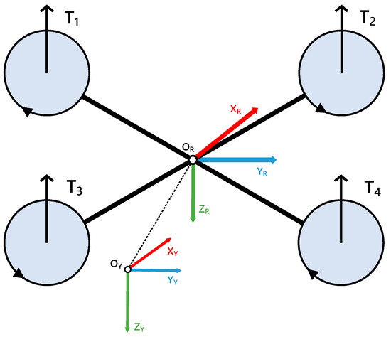 to denote the lift generated by the four motors; therefore, the flight dynamics of the quadrotor can be expressed as:
