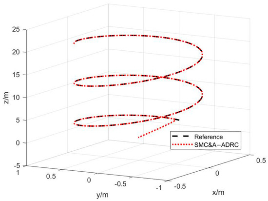 20] is able to track the desired position and attitude trajectory and the spiral trajectory well, and this strategy is able to compensate for the effect of the load on the control system dynamics. LADRC [