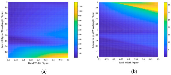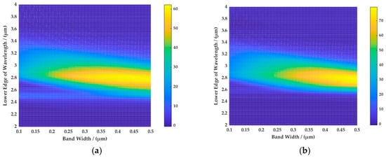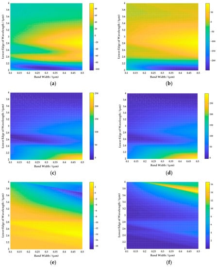 Then, set (λ, Δλ) as variables, where λ starts from 2.0 to 4.0 μm and Δλ is from 0.1 to 0.5 μm. Calculate the under a specific background, and the (λ, Δλ) corresponding to the obtained maximum value is the result after spectrum optimization.