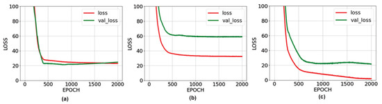Loss graphs of artificial neural networks: (a) Loss graph of ANN-1 network; (b) Loss graph of ANN-2 network; (c) Loss graph of ANN-3 network.