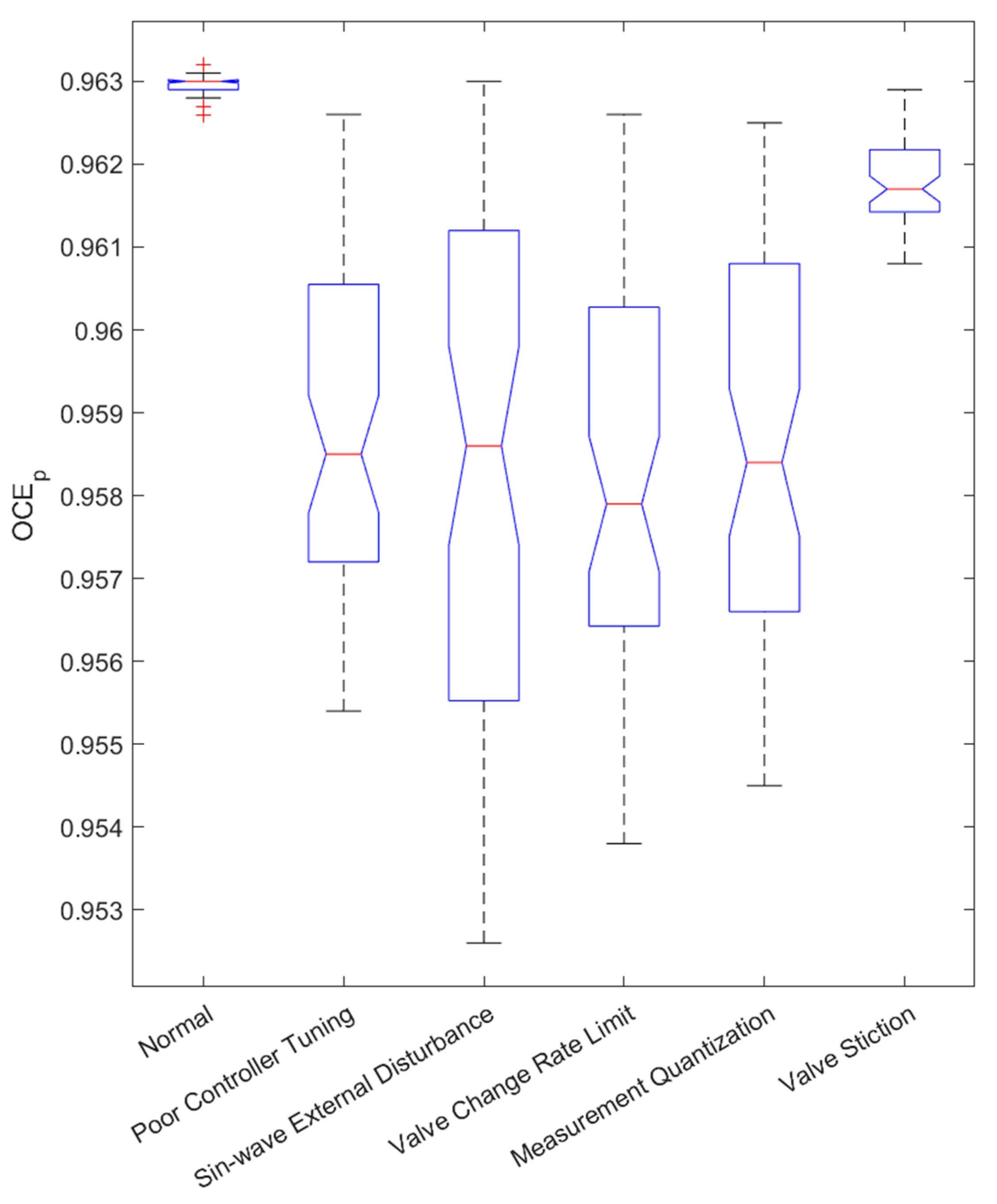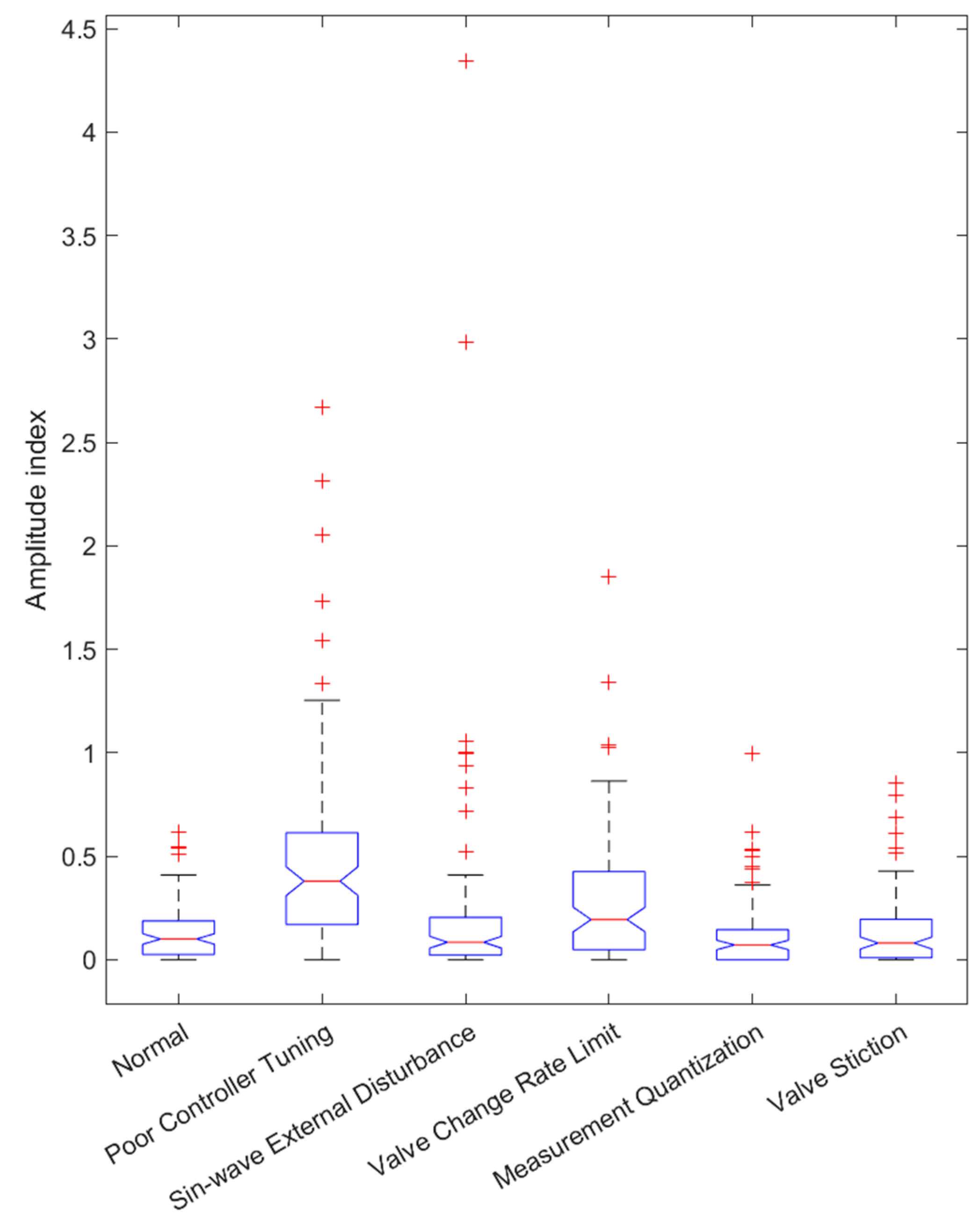 - Choudhury, M.A.A.S.; Shah, S.L.; Thornhill, N.F. Diagnosis of poor control-loop performance using higher-order statistics. Automatica 2004, 40, 1719–1728. [Google Scholar] [CrossRef]