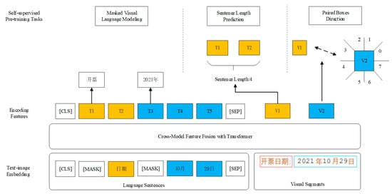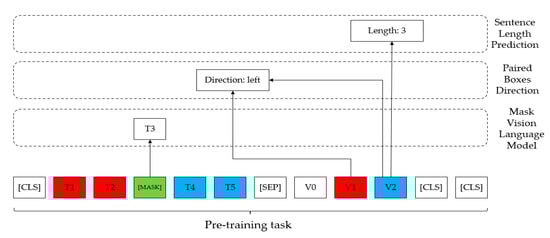 In the following section, the three self-supervised tasks of masked visual language modeling, sentence length prediction, and paired box direction are described separately.
