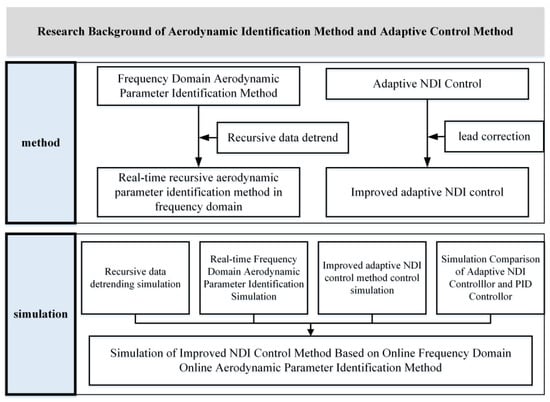 Aiming at the problem of poor robustness of traditional controllers under nonlinear conditions such as model uncertainty, this paper designs an improved adaptive NDI control method based on real-time aerodynamic parameter identification in the frequency domain. Firstly, the online frequency domain aerodynamic parameter identification method is introduced, including the setting of the excitation signal, recursive flight data detrending, CZT transform, and recursive identification steps. Then, the solution process of the adaptive NDI method based on real-time aerodynamic identification is introduced. Based on it, an improved NDI control method is introduced to improve the control response speed. In the final simulation part, the aerodynamic parameters are identified by the real-time identification method introduced in this paper. The identification error is within 1%, which meets the requirements of adaptive control. Then, the performance of the PID controller and adaptive NDI controller in aircraft attitude control is compared. Through quantitative comparative analysis, it is proved that the adaptive NDI controller is superior to the PID controller in terms of rising speed, response speed, and overshoot. By introducing an improved adaptive NDI controller for comparative simulation, it is concluded that the controller has better control effect, which shows the feasibility of the method introduced in this paper. The frequency domain online identification introduced in this paper can achieve accurate online identification, and on this basis, an improved adaptive NDI controller is used to achieve accurate attitude control. At the same time, because the method proposed in this paper can be recursively operated step by step, the calculation amount of online identification is reduced, which is of great significance in practical engineering application.