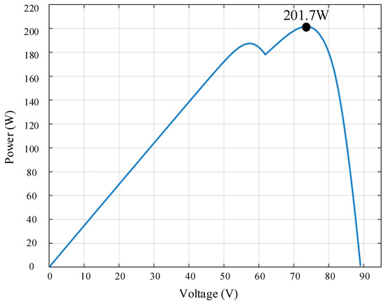 Table 6 shows five test cases of the PVMA in 4 series-3 parallel form used under different shading conditions herein, in which all P-V characteristic curves of the PVMA are obtained from the simulation under standard test conditions (STC). Although the changes in both temperature and sunshine would affect its maximum power output, the impact on the MPPT tracking process is not significant because of its little variation in the shape of the P-V characteristic curve.