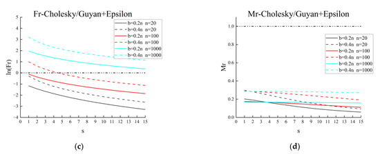 Indicator curves of two combinations: (a) Fr–Cholesky/Guyan + PCG; (b) Mr–Cholesky/Guyan + PCG; (c) Fr–Cholesky/Guyan + Epsilon; (d) Mr–Cholesky/Guyan + Epsilon.