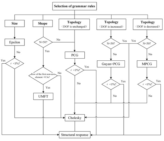 After the above analysis, the reanalysis method selection criterion for structural optimization process is established in this section (Figure 7).