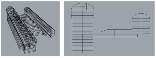 According to the survey of the structural surface of the Liyang pumped storage power station, the joints, and fissures in the underground cavern surrounding rock are very developed, mainly in steep dip angle, and the joints in slow dip angle are rare, so we select the representative line data among all the measured data of the structural surface of Liyang, and model in Rhino3D software according to the number and production of joints counted on the line. Rhino3D is a NURBS curve-based 3D modeling software developed by Robert McNeel & Associates, Inc. in the United States. It is compatible with most 3D software such as 3D MAX, AutoCAD, MAYA, Softimage, Houdino, and Lightwave because of its ability to draw free curves and surfaces. Therefore, Rhino3D has been widely used in industrial design and scientific modeling fields. Every 10 m is divided into a section for point analysis, and the number of blocks and volume of blocks inside the regional rock mass are counted. Figure 1 shows the three-dimensional diagram of the joint surface of the structural surface of the exploration flat cave and the fragmentation degree of each section is calculated using Equation (1) (Table 2).