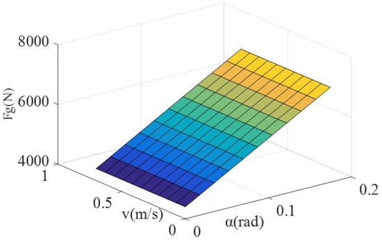 According to Formulas (4)–(6), the relationship between the output force of the rear-wheel suspension cylinder and the load force can be solved.
