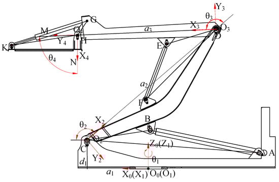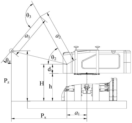 In the design, it is necessary to study the mapping relationship between the hydraulic actuators of the boom and the joint angle and establish the coordinate system shown in Figure 11.