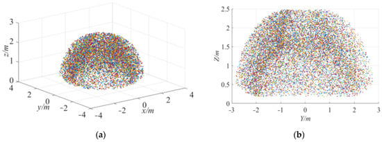 As depicted in Figure 12, it can be seen that the end working space of the photovoltaic panel cleaning robot is similar to a hemispherical body; from the Y-Z working plane, it can be seen that the limit position that can be reached during forward and reverse cleaning is [−2.85 m, 2.85 m]; combined with the cleaning radius requirements of the photovoltaic panels, the effectiveness of the designed boom cleaning device was verified.