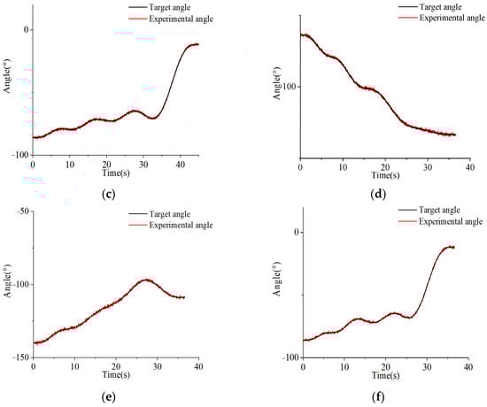 Trajectory tracking of each joint of the cleaning arm before and after optimization. (a) Unoptimized big arm; (b) unoptimized lower arm; (c) unoptimized sweeping disk; (d) optimized big arm; (e) optimized lower arm; (f) optimized sweeping disk.