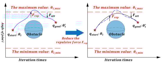 | %. The joint angle changes to along the negative gradient direction of the potential field function. |