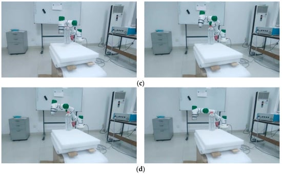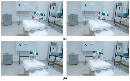 The algorithm should strive to compute excellent trajectories, as excellent trajectories can save the energy consumed by the robotic arm, reduce the impacts during motion, and enhance the operational efficiency. From Table 4 and Table 7, it can be observed that the algorithm presented in this paper exhibits smaller joint angle variations compared with the genetic algorithm. This indicates that using the algorithm proposed in this paper can reduce the energy consumption during the operation of the robotic arm. However, the algorithm proposed in this paper still has some drawbacks. In comparison to the genetic algorithm, this algorithm may cause the robotic arm’s end effector to move slightly further, thereby reducing the efficiency of the robotic arm’s operation. Additionally, the smoothness of the paths obtained by this algorithm is lower than that of the genetic algorithm, which may result in a greater impact on the robotic arm. Lastly, taking the rectangular beam obstacle in Section 4.2 as a case study, we conducted real-world testing using the algorithm presented in this paper. It can be observed that the robotic arm can effectively avoid obstacles.