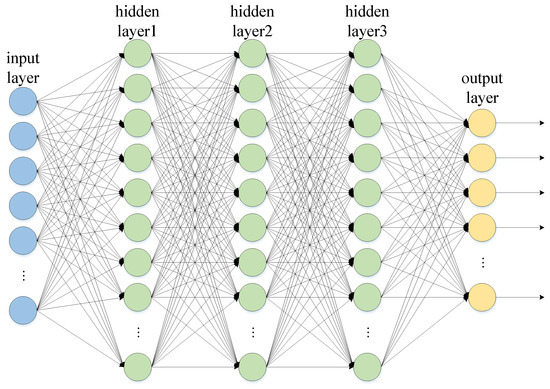 The neural network layers inside DNN can be divided into input, hidden, and output layers according to the position of different layers. Generally, the input layer is located at the beginning, the output layer is located at the end, and all intervening layers are referred to as hidden layers. In this network architecture, there exist complete connections between each layer [22]. The basic structure is shown in Figure 6.