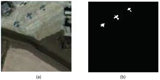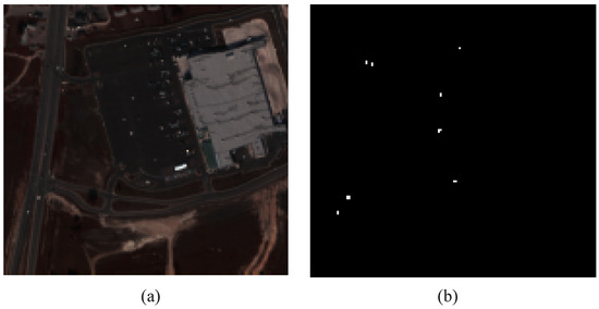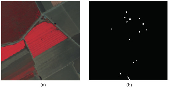 - AVIRIS airplane dataset: the AVIRIS aircraft dataset is acquired from the Infrared Imaging Spectrometer in San Diego, CA, USA. The AVIRIS airplane dataset has a spatial resolution of 20 m and a spectral resolution of 10 nm, with a spectral wavelength range from 370 nm to 2510 nm. The AVIRIS aircraft dataset has a spatial size of , with 224 bands. Considering the absorption region, low signal-to-noise ratio and damaged bands, 189 bands are reserved for experiments. Figure 3 illustrates the visualization of the AVIRIS airplane dataset and its corresponding ground truth.