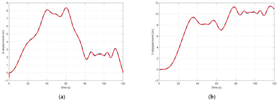 According to the behavior of the dynamics proposed in Equation (6), the knowledge of the displacements (, ) according to the axes and makes it possible to deduce the orientation along the -axis. In effect,