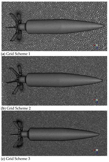 Using a combination of CFD simulations and wind tunnel experiments, the error range of the drag coefficient for a projectile was determined based on its original design as shown in Figure 4. The simulation software used is FLUENT V16.2 [34]. To ensure computational accuracy, the time step for solving was initially set at 1 × 10−6 s and eventually determined to be 1 × 10−5 s. Unstructured polyhedral grids were chosen for numerical calculations, and a density-based solver was employed. The far-field inflow was specified using the pressure far-field condition. In order to improve simulation accuracy, grid refinement was applied to regions such as the projectile head and tail where shock waves might occur. The size of the refined grids ranged from 0.5 mm to 4 mm, while the remaining parts of the projectile had a uniform grid size between 5 mm and 50 mm, with larger grid sizes in regions farther away from the projectile. The maximum value of Y+ was set to 0.96. As deterministic CFD simulations do not account for the random variations in the operating environment that can affect the performance of the aircraft, uncertainty quantification methods were employed to provide stochastic solutions for the variables of interest, thereby supporting the fine-tuning of the aircraft’s shape, structure, and flight control system [35,36,37]. Hence, the uncertainty quantification is used for both the choice of the time step and the residual settings in the CFD simulations.