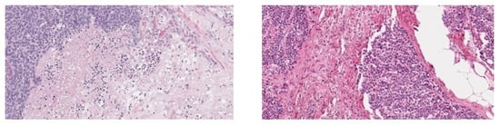 Figure 3 shows two examples of the SCAN dataset. The left one is a tissue image from the breast and the right one is from the adrenal. The images in SCAN were randomly cropped to and then resized to . We combined images of different magnifications during model training to improve the model’s ability to obtain scale-independent features.