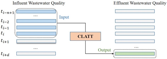 CLATT is an encoder–decoder model with an attention mechanism for wastewater quality prediction. The overall structure of the model is shown in Figure 1. In Section 3.1, the preprocessing will be discussed. In Section 3.2, we will focus on the input and output of the model. The encoder-decoder module of the model will be explained in Section 3.3 and the attention mechanism is described in Section 3.4.