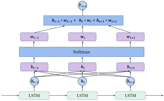 Ref. [23] proposed an attention mechanism to aggregates global information. The attention mechanism used in this paper aggregates the information at adjacent moments, and the structure of the attention mechanism is similar to a Dense layer with several weight parameters corresponding to the time dimension of the output from LSTM. The weight is accumulated after being multiplied by the output from LSTM, which produces the predicted effluent water quality. The attention mechanism can be computed as follows: