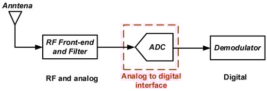 Taking the receiver in WLAN as an example, as shown in Figure 1, various digital processing techniques, including modulation techniques, are implemented in the digital domain. However, the signals received by the antenna and the signals after down-conversion are in the RF and analog domains, respectively. Therefore, an analog-to-digital conversion interface is required to convert the analog signals into digital signals for signal processing and transmission. However, the increasing demand for high-speed, high-resolution, and low-power WLAN systems has placed a great burden on the design and implementation of ADCs.