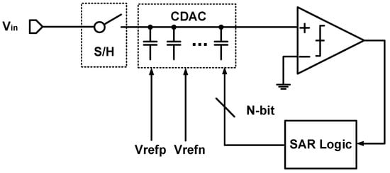 The following Figure 2 illustrates the block diagram of a conventional SAR ADC, which mainly includes a sample and hold (S/H) block, a comparator, SAR logic, and a CDAC.