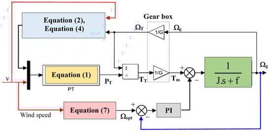 In the literature, we found many MPPT techniques for wind turbine systems. In this work, we used only the Tip-Speed Ratio control which is presented in Figure 4. The optimal speed is calculated from the optimal Tip-Speed Ratio λopt and wind speed, as shown in Equation (7).