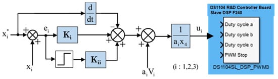 Using Equation (16), we can design the voltage controller (Figure 13).
