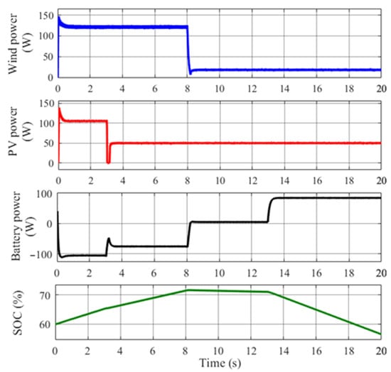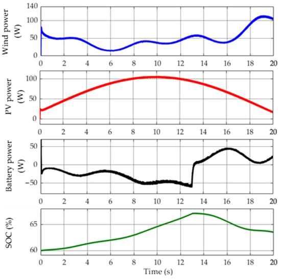 The battery is a very important device in the hybrid system because the system relies on its energy balance. Additionally, the battery plays a key role in the stabilization of the DC-bus voltage (Figure 9).