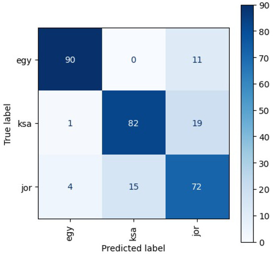 Figure 12). On the other hand, for the Brexit dataset, more misclassified articles under the same classifier were noted. Specifically, 11 and 19 Egyptian articles were mistaken as being of Saudi and Jordanian origin, respectively,
