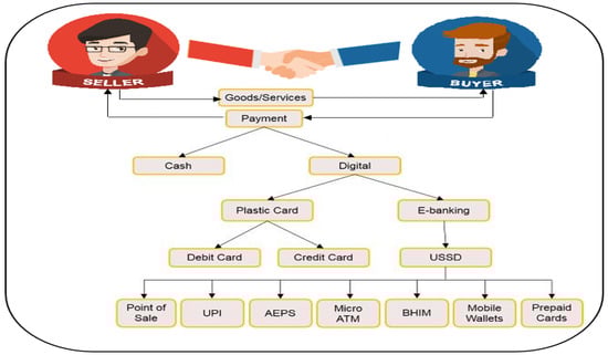 Figure 2. Payment methods in e-commerce. - E-commerce merchantThe merchant is responsible for the time of delivery of goods, customer choices, customer questions, promoting the quality of goods, and his/her own method of persuading the customer, thus facilitating the process of selecting e-commerce products and selling goods [25].