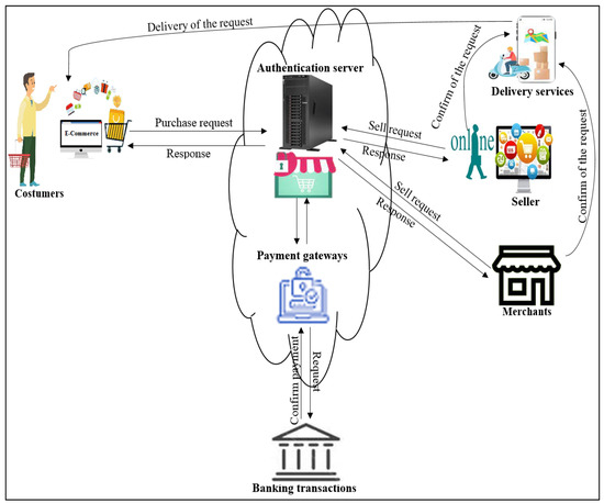 - E-commerce payment mannerPayment systems include e-commerce by means of credit cards or checks. The payment of e-commerce invoices is an important advantage of the use of e-commerce. Most customers utilize credit cards or checks when buying goods via e-commerce; Figure 2 shows payment manners in e-commerce applications. Mutual authentication is necessary for a secure electronic payment manner so that parties to the transaction may verify each other’s identities, confidentiality, authentication of transactions, and non-repudiation of customer and company user data. With the increasing proliferation of online shopping centers, the enhancement in payment manners has been studied, as credit cards are widely accepted on e-commerce platforms [24].