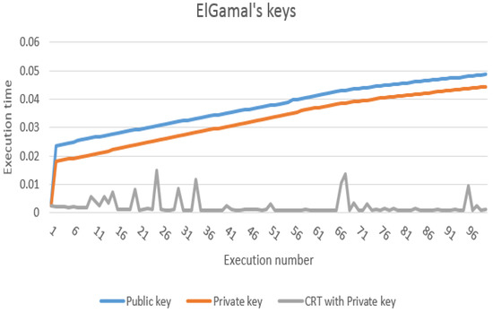 Key generation comparison of traditional ElGamal and ElGamal-CRT.
