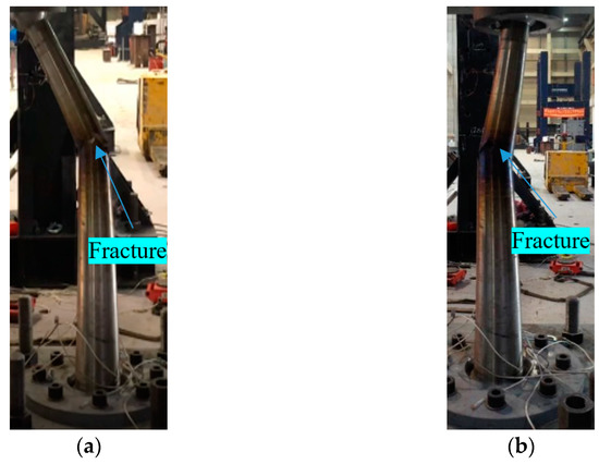 As shown in Table 2, as the loading rate decreases, the steel dampers can withstand more cycles and have a larger CIS value. On the other hand, the dampers can withstand more cycles and have a larger CIS value for steel with a higher elongation rate under similar loading speeds. Therefore, the ductility of the steel should be further considered when evaluating the damage of dampers under the mentioned deformation level. The index of elongation can reflect this capacity to some extent. The ratio of the CIS to the steel elongation is listed in Table 2. It can be seen that the ratio (CIS/λ) of the #1 cylindrical damper and #2 E-shaped damper with faster loading speed is 11.4, while this ratio is close to 14 for the #2 cylindrical damper and #1 E-shaped damper with the slower loading speed.