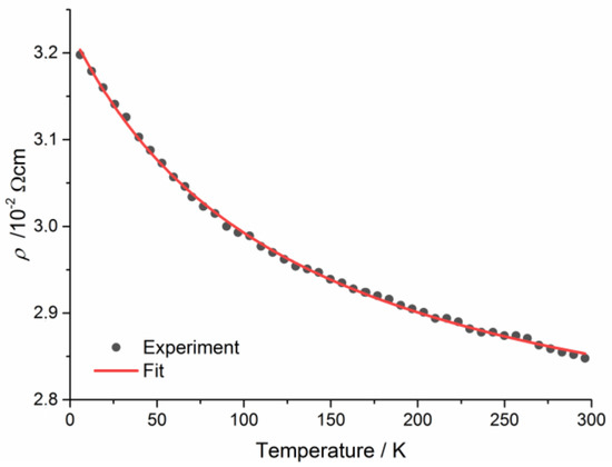 Assuming that Matthiessen’s rule holds and representing resistivity as a sum of elastic and inelastic contributions, where the latter increase with increasing temperature due to a power law (e.g., a term such as CTn), the resistivity data can be fitted to [24,25]: