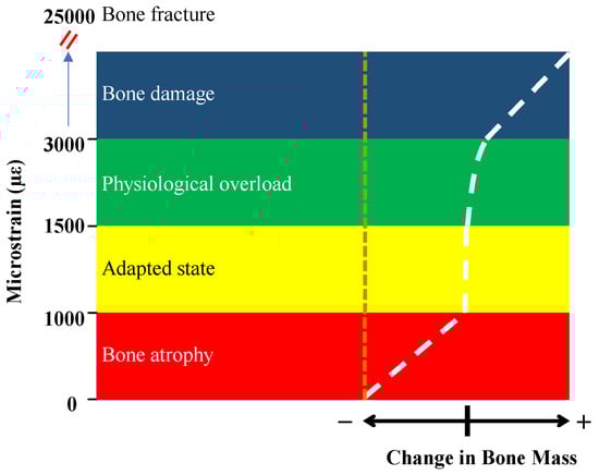 The mechanostat hypothesis shows different levels of strains and corresponding bone remodeling [].